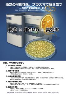 このたび、プラズマを用いた最先端の変異誘発技術「ARTP(Atmospheric and Room Temperature Plasma)」を活用した微細藻類・有用微生物の変異育種サービスを開始いたしました。
